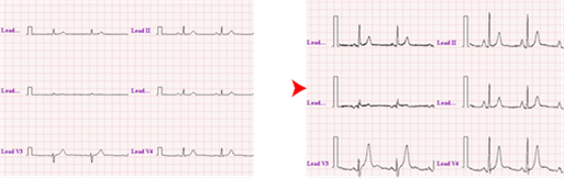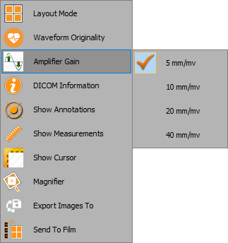 The amplifier gain tool enables the user to adjust the amplification of the ECG waveform in order to emphasis waveform peaks. Follow the instructions below to learn how to use this: