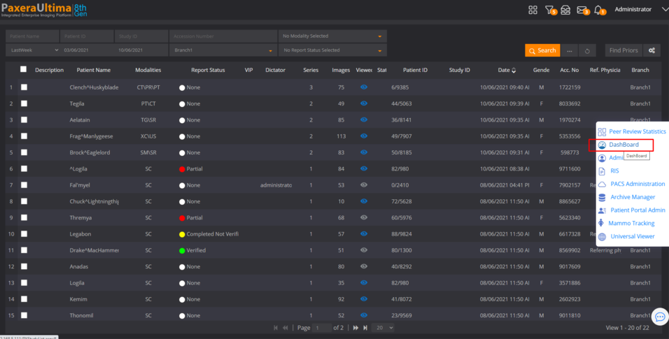The dashboard provides real-time operational performance measures that span the workflow of the radiology department; it enables the department manager to analyze the workflow within the department.
