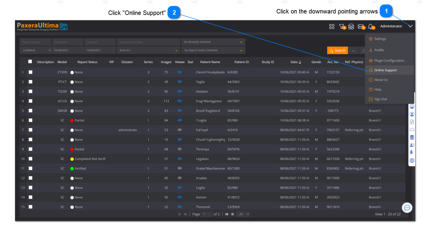 The online support enables you to ask questions to the PaxeraHealth support team, directly through a chat box on the software. Simply follow the steps below: