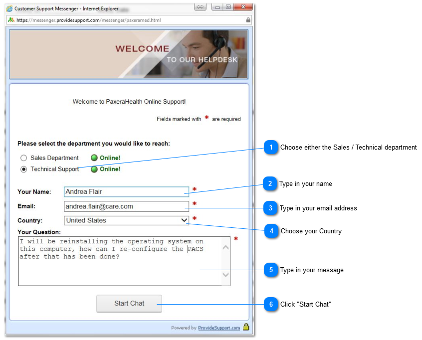 Once you start the chat, you will have a live representative from the PaxeraHealth support team to help you.