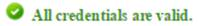 5. Click on the ‘Validate credentials’ button to ensure that the credentials are valid, if successful, a message will be displayed as follows: