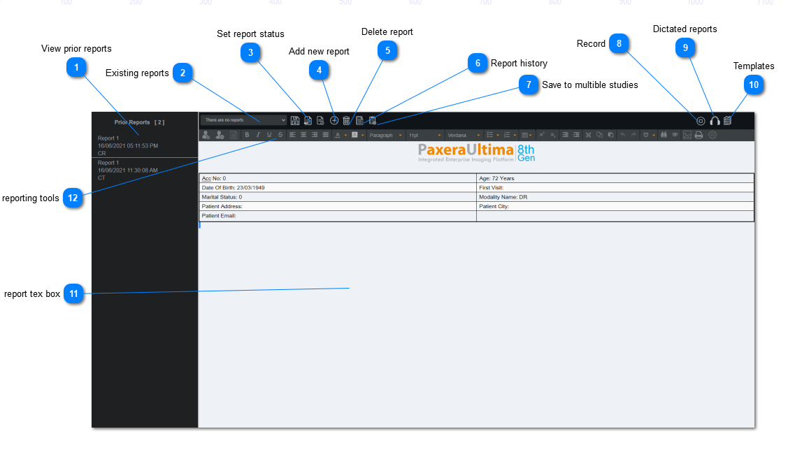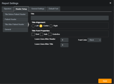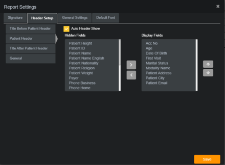 Report Header: customize the table of patient / study information that populates at the top of the report.