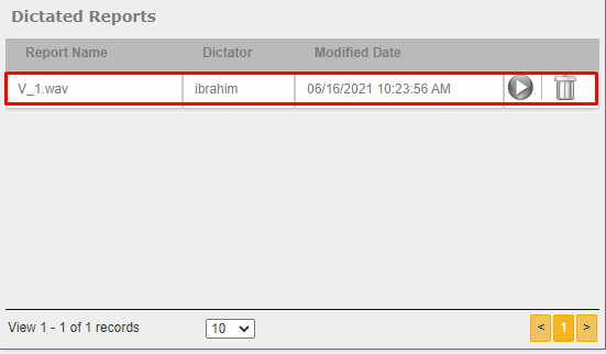 Your recording will be saved automatically. Click on the 'dictated reports' button to view / listen to your recordings.