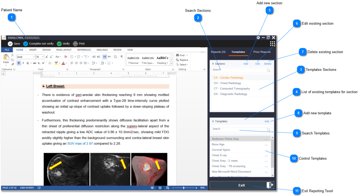 The templates panel enables the user to find, use, edit, add, delete, and replace templates. An overview of the template panel is shown below: