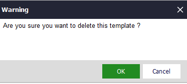 4. A new window will appear warning the user that the template will be deleted, click on ‘Yes’. The template will now deleted.