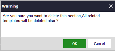 - A new window will appear warning the user that the section will be deleted, click on ‘Yes’. The section and all related templates will now deleted.