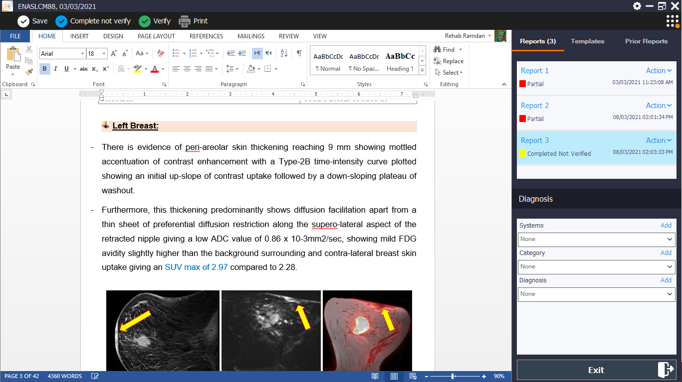 2. Click on the ‘Add Diagnosis’ button. The diagnosis description will now be added to the report