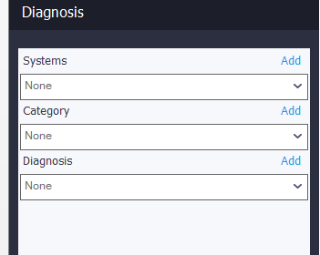 1. Select an existing option from the ‘System’, ‘Category’, and ‘Diagnosis’ dropdown lists or manually type new ones.