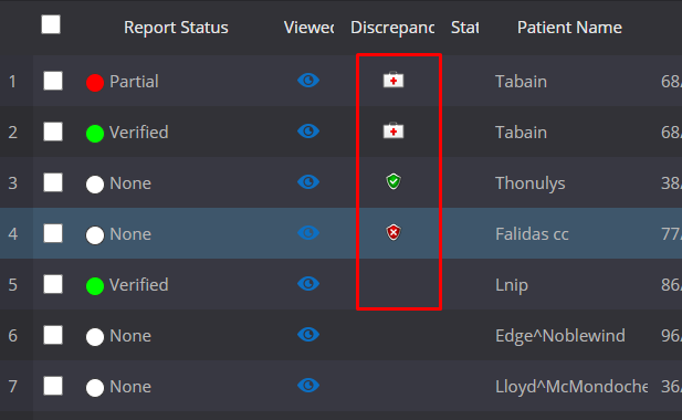 The ED discrepancy studies can also be seen from the worklist, as shown below: