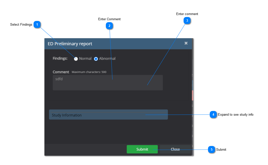 Choose whether the study is normal / abnormal, leave a comment, and click on 'Submit' when you are done.