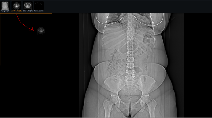To display a series in one of the windows, the user must drag the series from the series panel into an image window, as shown below: