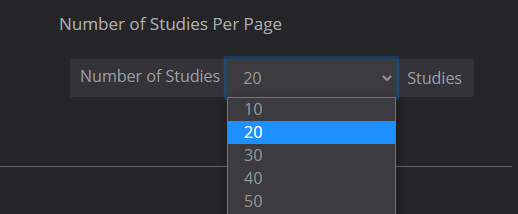 Use the drop-down menu to select the maximum number of studies to be displayed per page.