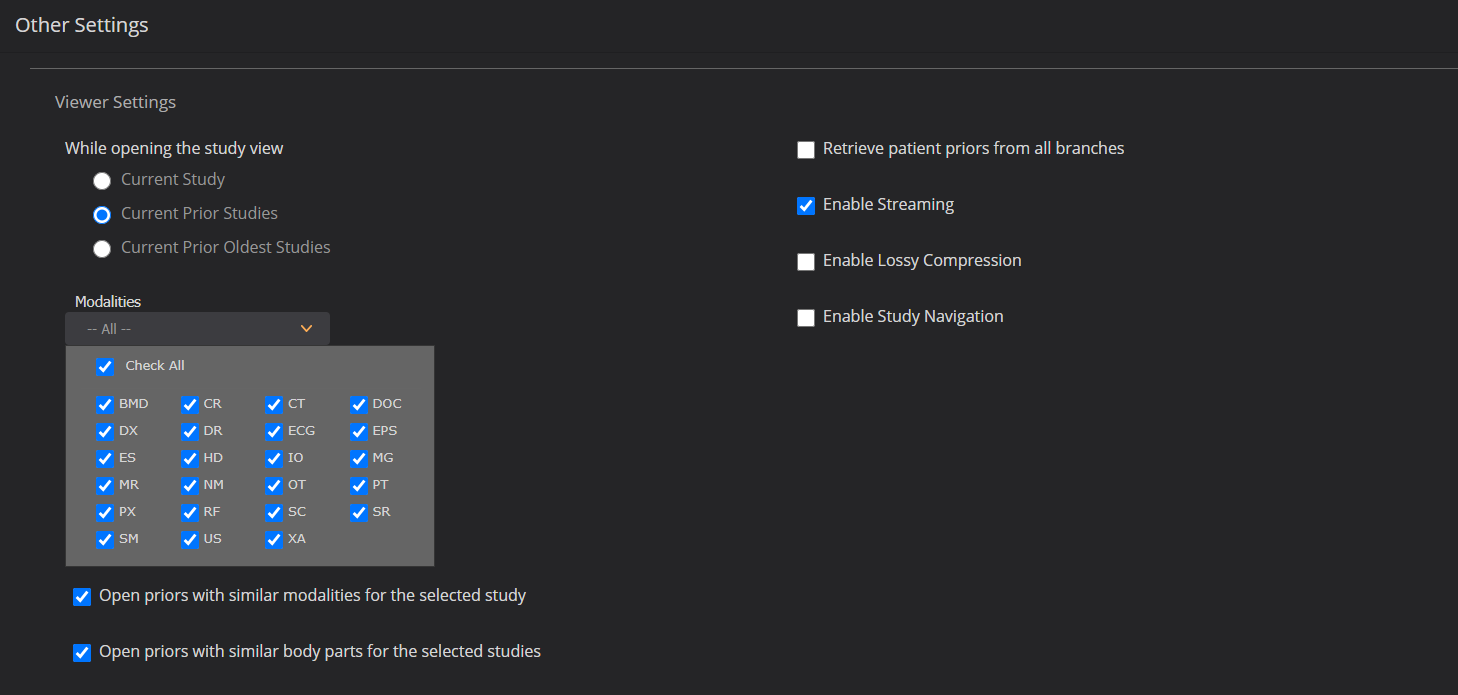 The user can also customize miscellaneous viewer features including: retrieving priors, streaming, study compression and navigation.