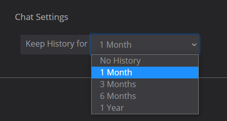The user can keep the chat history based on the time period that is set. The chat history will be cleared after the set time period.