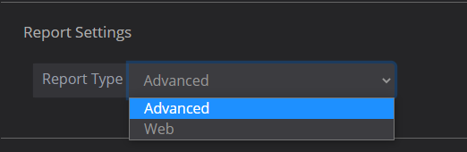 Use the drop-down menu to select either 'Web' or 'Advanced' reporting tool.