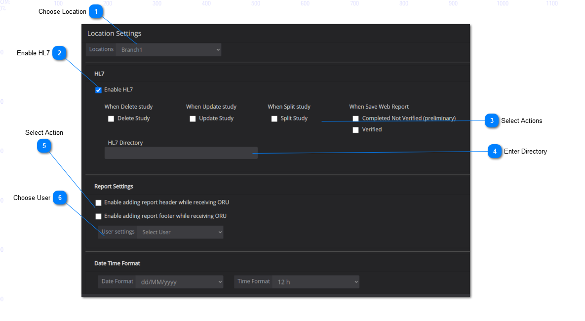 The location settings is where the user can configure HL7 and report settings if an integration with the EMR / RIS is present. See below for instructions: