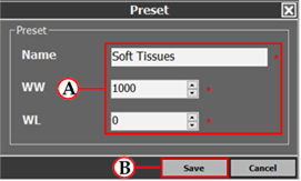Simply enter the name, WW, and WL (A) , and then click on the ‘Save’ button (B) .