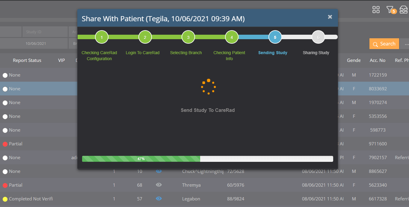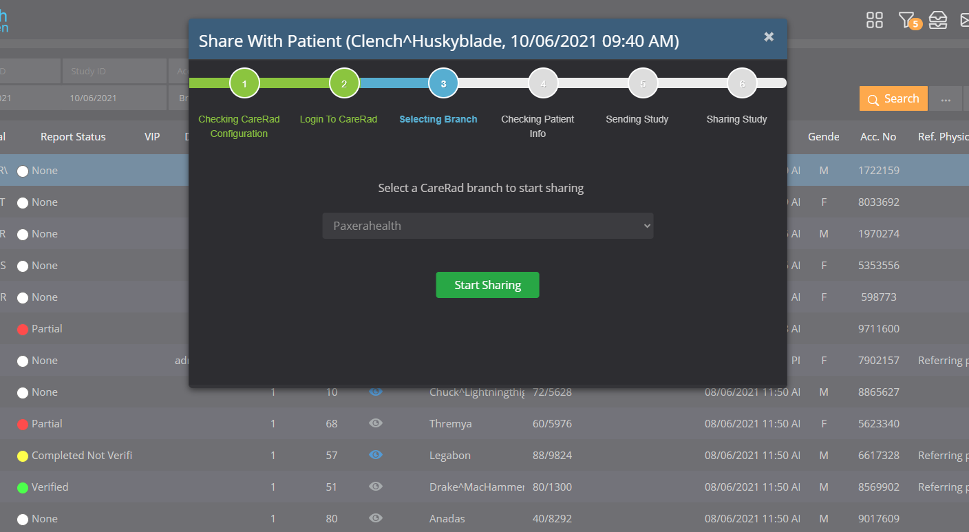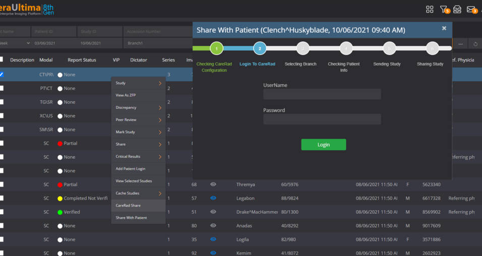 4) Sending study to CareRad