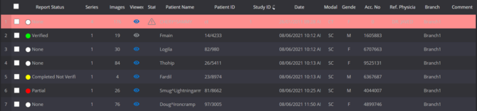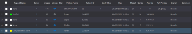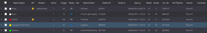 Studies that have been viewed will be denoted with a icon under the viewed column; otherwise the study will be denoted with a icon indicating it has not been viewed.