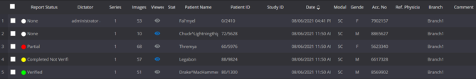 The study will be stamped with the appropriate username who dicated the study under the Dictator column.