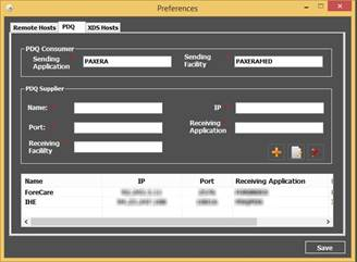 • PDQ supplier & Registry - select preconfigured PDQ supplier and XDS host from the dropdown lists. If these have not been configured, the user first needs to click on ‘Preferences’ for configuration.