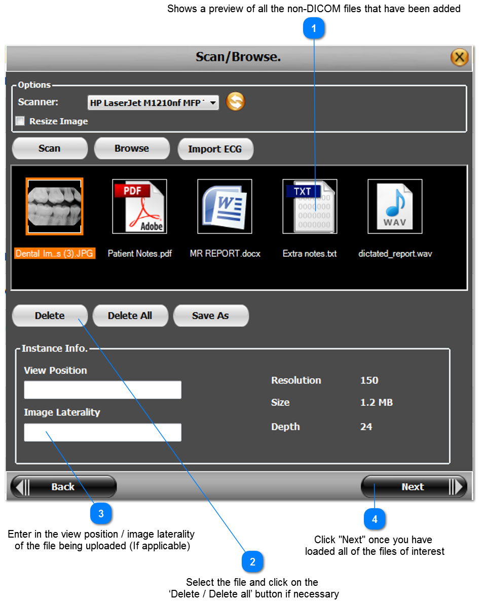 The import non-DICOM process will now be complete and the files will be imported to the host.