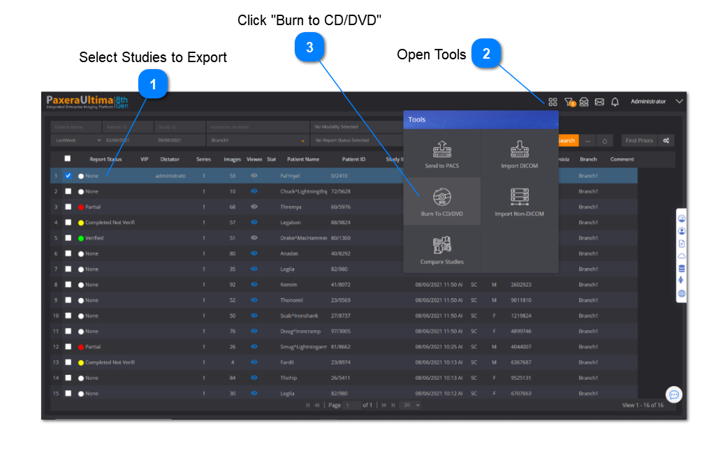 Include Viewer - cross platform DICOM viewer written onto the CD so that the study can be viewed