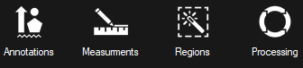 The toolbox panel contains shortcuts to tools and is located on the bottom of the screen in the study viewer: