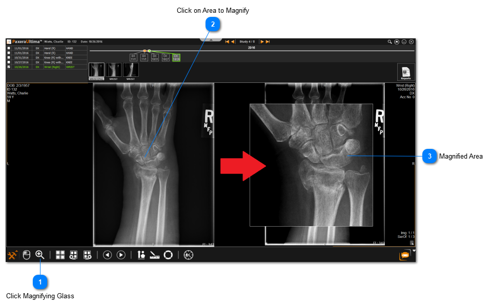 The magnifier is used to magnify a region of interest on the image from the image viewer: