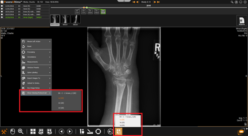 The VP list enables quick access to changing the viewing protocol. Simply select the ‘VP list’ button from the toolbox panel or right-click menu and then select the VP of interest to be applied.