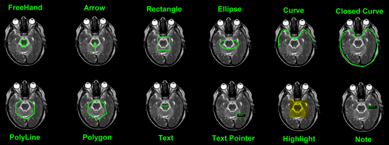 Annotations are used to create markings or to add text to an area in the image.