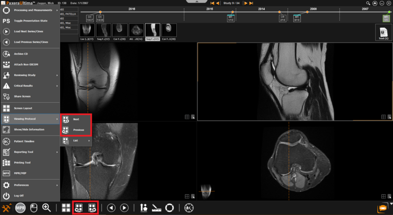 2. Go to Viewing Protocol > Next OR Previous(you can also access these buttons from your bottom shortcuts panel)