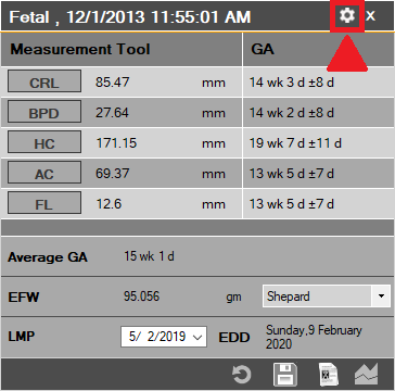 To access this, simply click on the ‘settings’ button on the top right corner of the fetal measurement tool.
