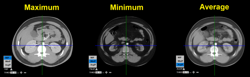 The user can choose the intensity projection mode from maximum, minimum, or average: