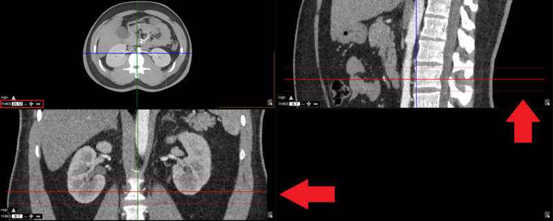 The MIP function is situated in the bottom left corner of each image window, as shown below: