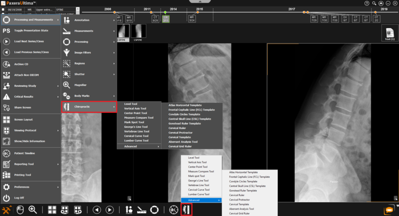 Go to the main toolbox on the bottom left corner > select Processing and Measurements > select Chiropractic.