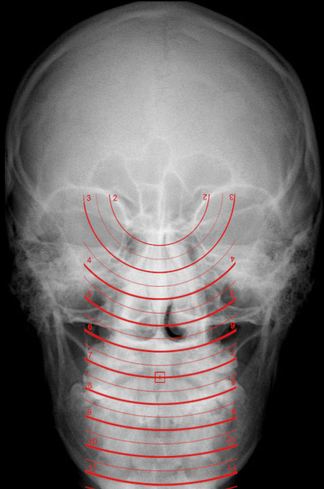The condyle circles template is used to perform condyle circle measurements on occiptal condyles. Follow the instructions below to use this tool: